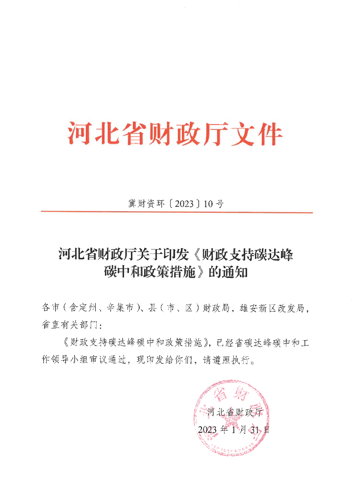 河北省财政厅《财政支持碳达峰碳中和政策措施》.pdf
