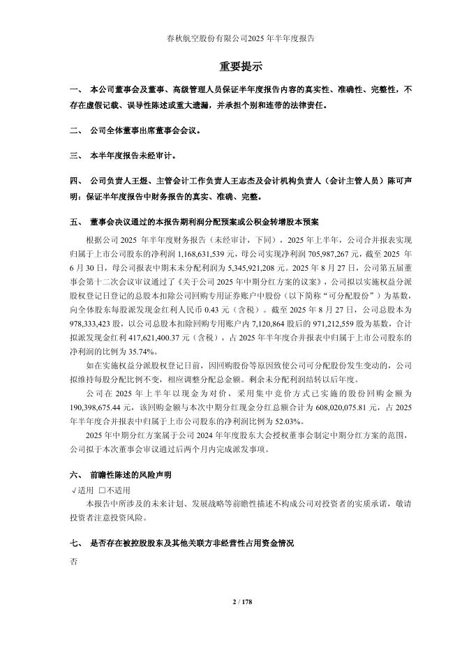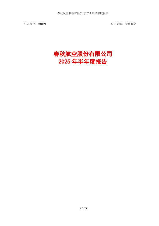 601021-春秋航空:春秋航空2025年半年度报告.pdf