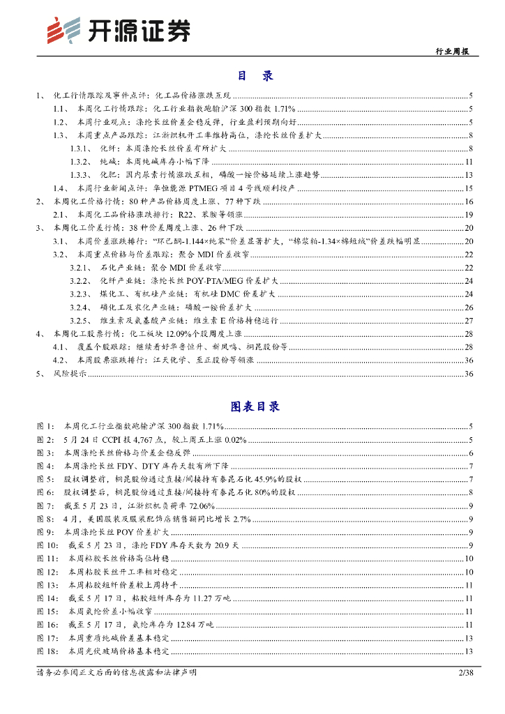 开源证券:化工行业周报:涤纶长丝价差企稳反弹,行业盈利预期向好.pdf