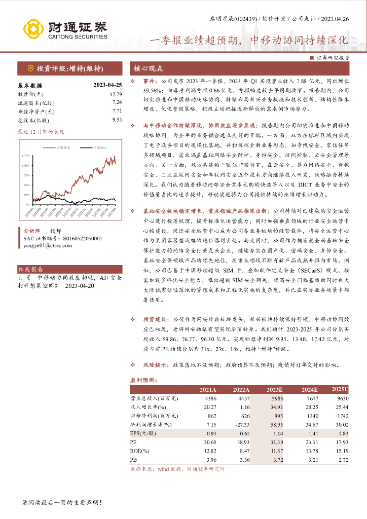 财通证券:启明星辰(002439)-一季报业绩超预期,中移动协同持续深化.pdf