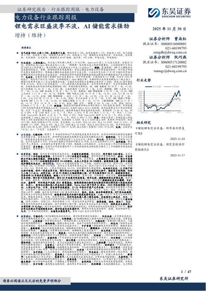 东吴证券:电力设备行业跟踪周报:锂电需求旺盛淡季不淡,AI储能需求强劲.pdf