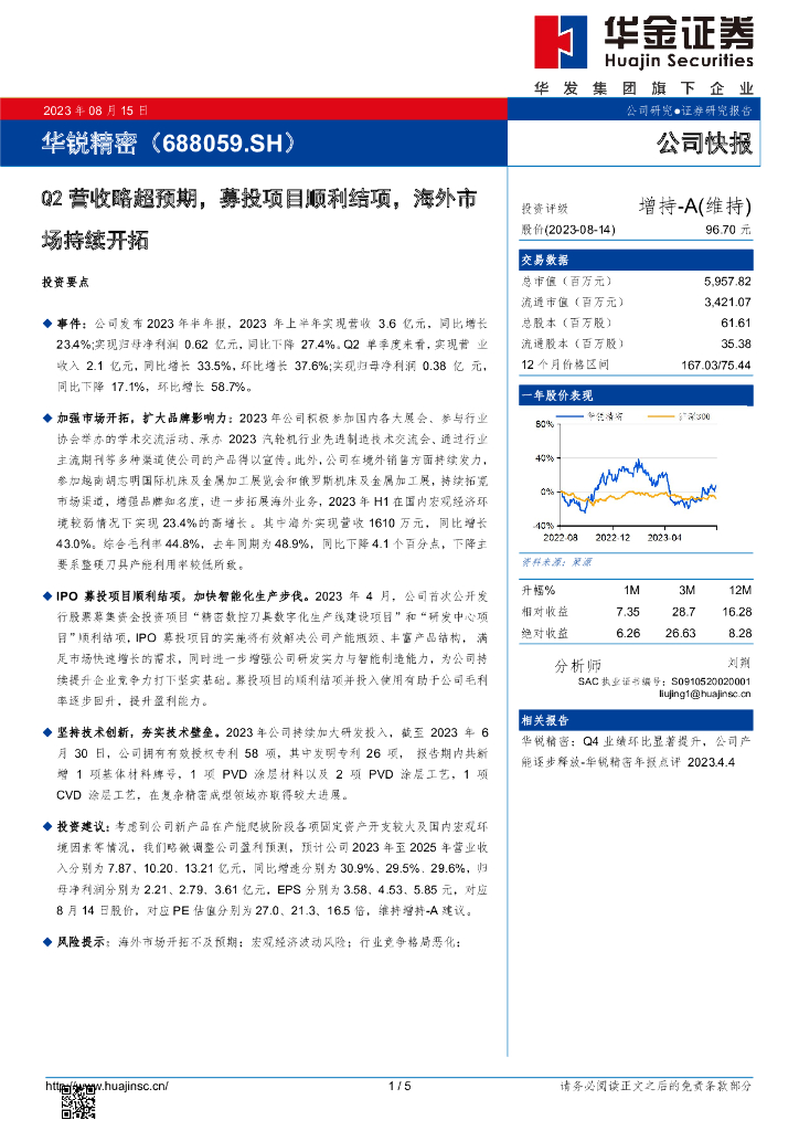 华金证券:华锐精密(688059)-Q2营收略超预期,募投项目顺利结项,海外市场持续开拓.pdf