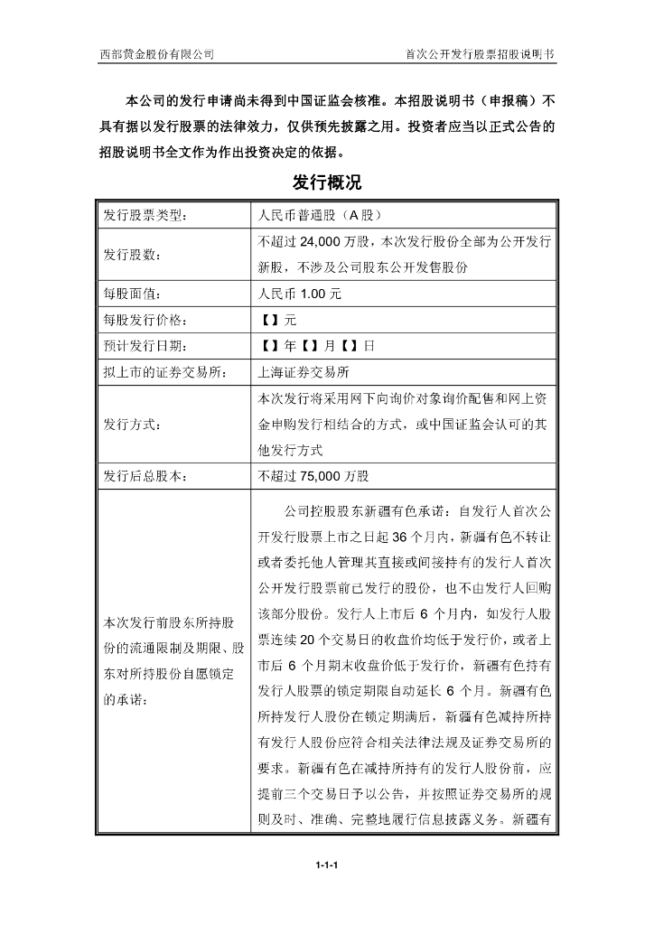 西部黄金股份有限公司上交所主板IPO上市招股说明书.pdf