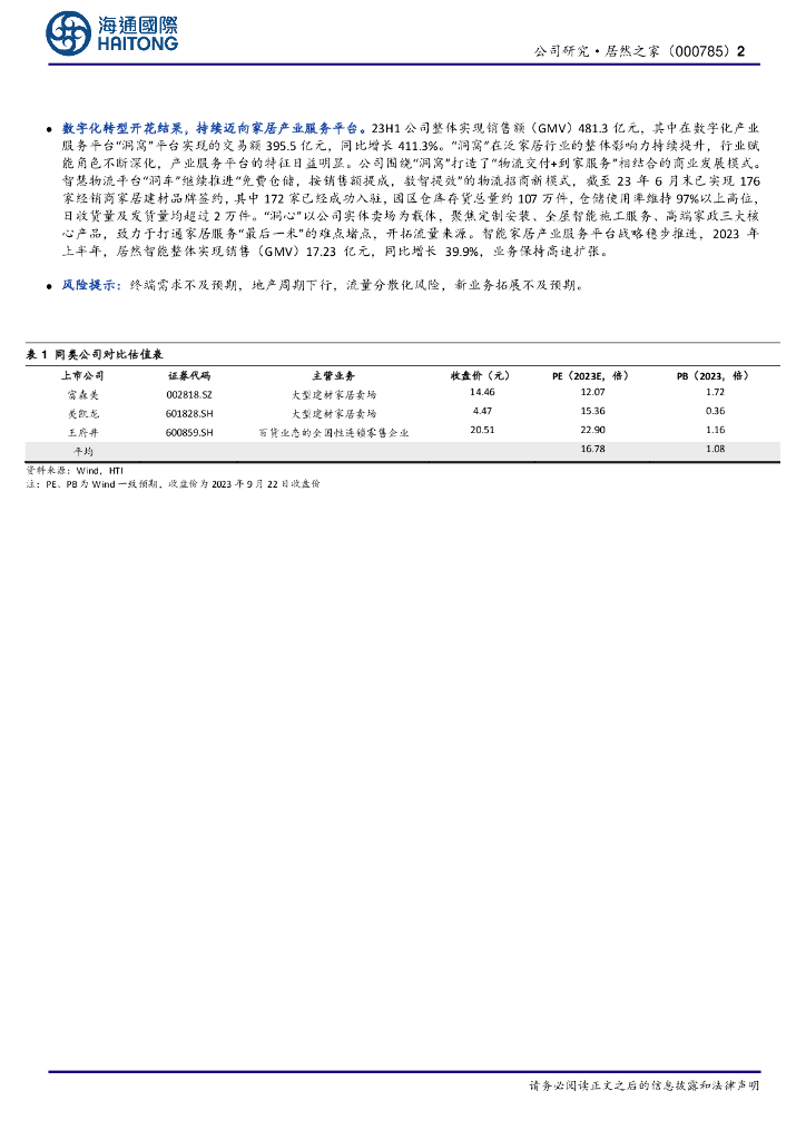 海通国际:居然之家(000785)-公司半年报:数字化转型开花结果,持续迈向家居产业服务平台.pdf