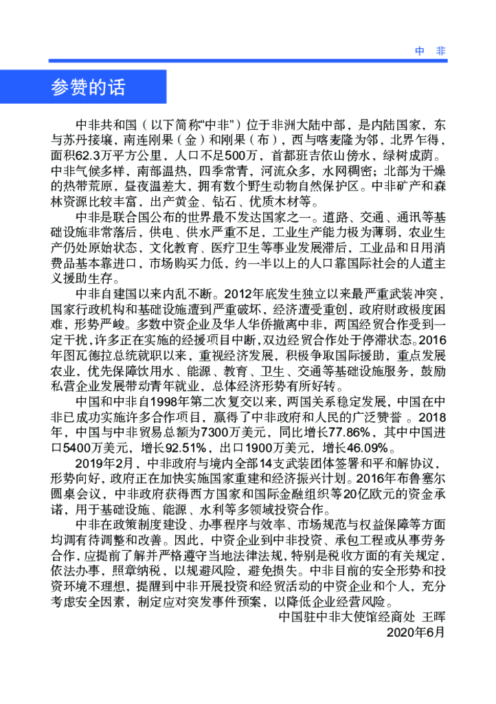 商务部:对外投资合作国别(地区)指南:中非(2020年版).pdf