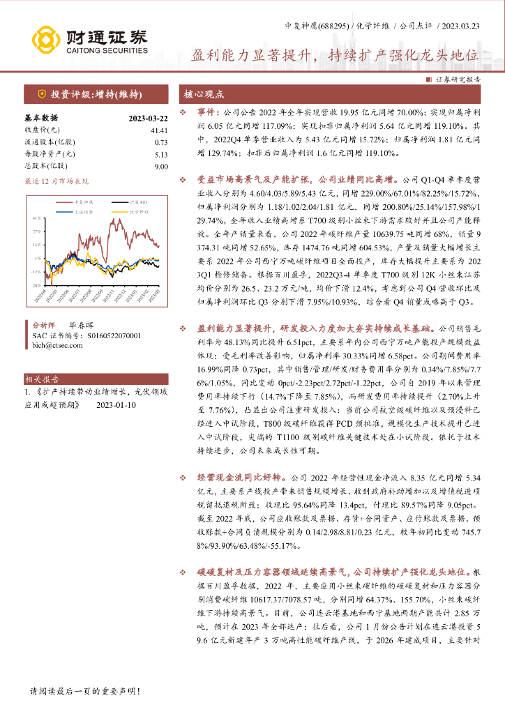 财通证券:中复神鹰(688295)-盈利能力显著提升,持续扩产强化龙头地位.pdf