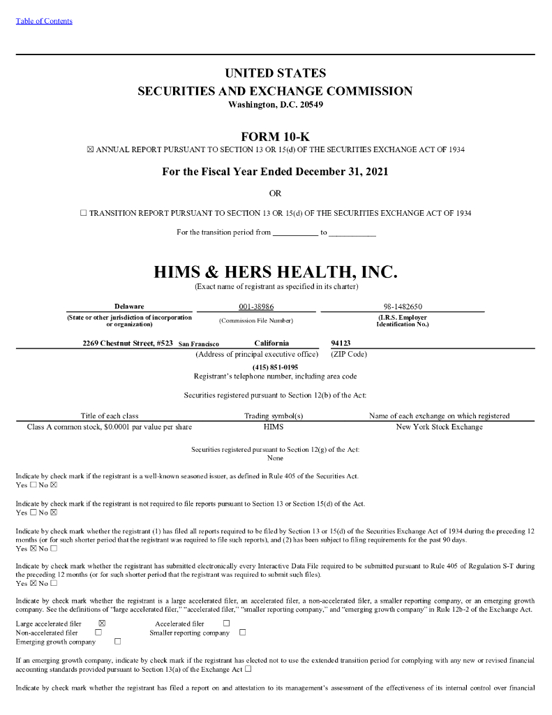 Hims & Hers Health, Inc.(HIMS)2021财年年度报告(英文版).pdf