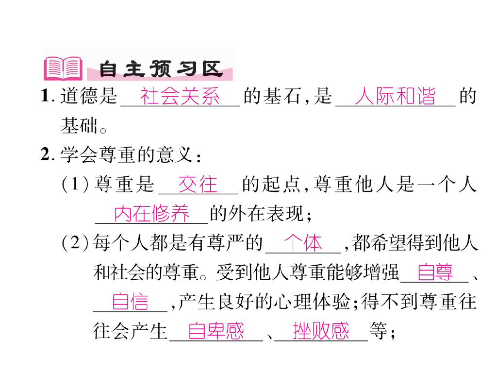 八年级道德与法治上册同步作业课件:第四课 社会生活讲道德 第1课时 尊重他人 (21张).ppt