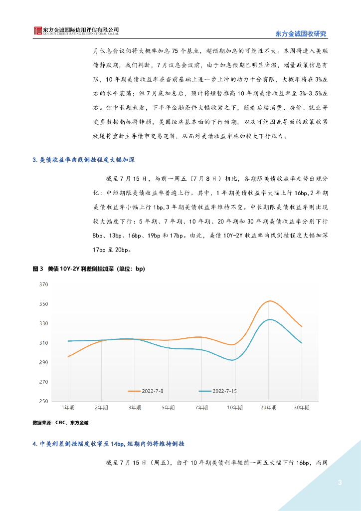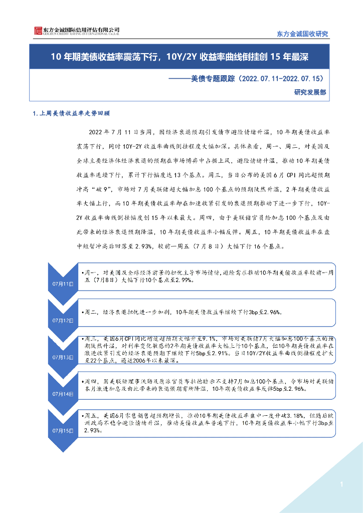 东方金诚:固定收益 美债专题跟踪(2022.07.11-2022.07.15):10年期美债收益率持续下行 10Y 20Y收益率曲线倒挂创15年最深 研究发展部.pdf