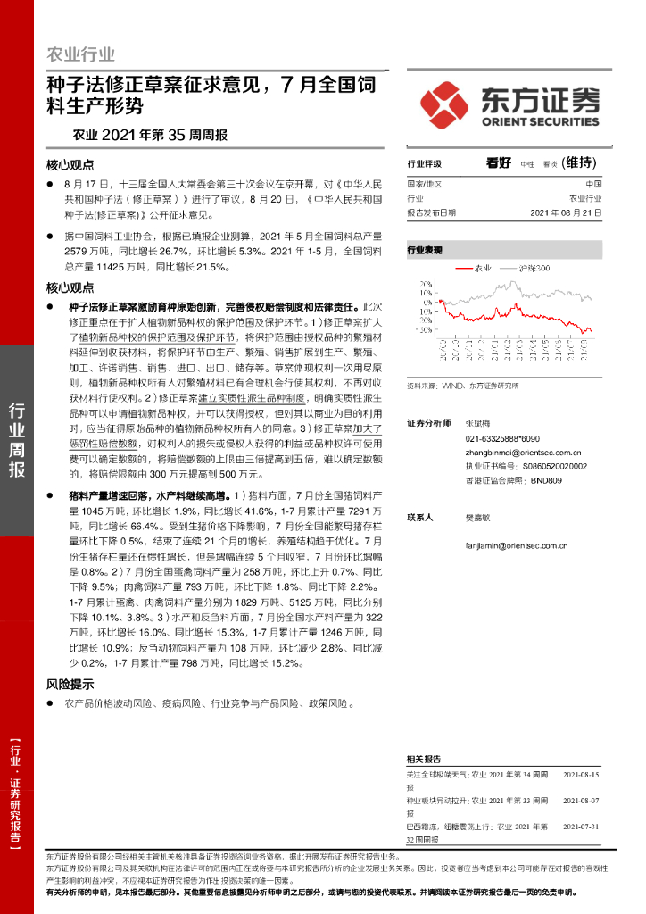 东方证券:农业2021年第35周周报:种子法修正草案征求意见,7月全国饲料生产形势.pdf