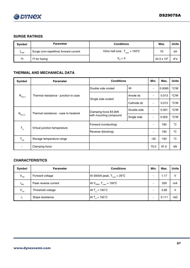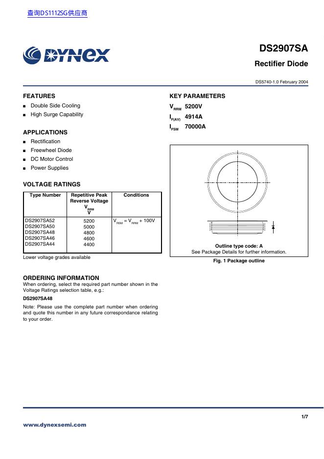 DYNEX DS2907SA Rectifier Diode 数据手册.pdf