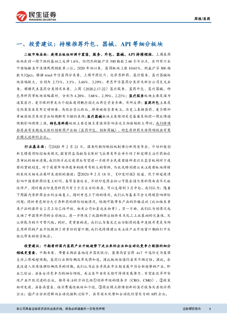 民生证券:医药周报:疫情概念股调整,非药龙头短期表现较好.pdf