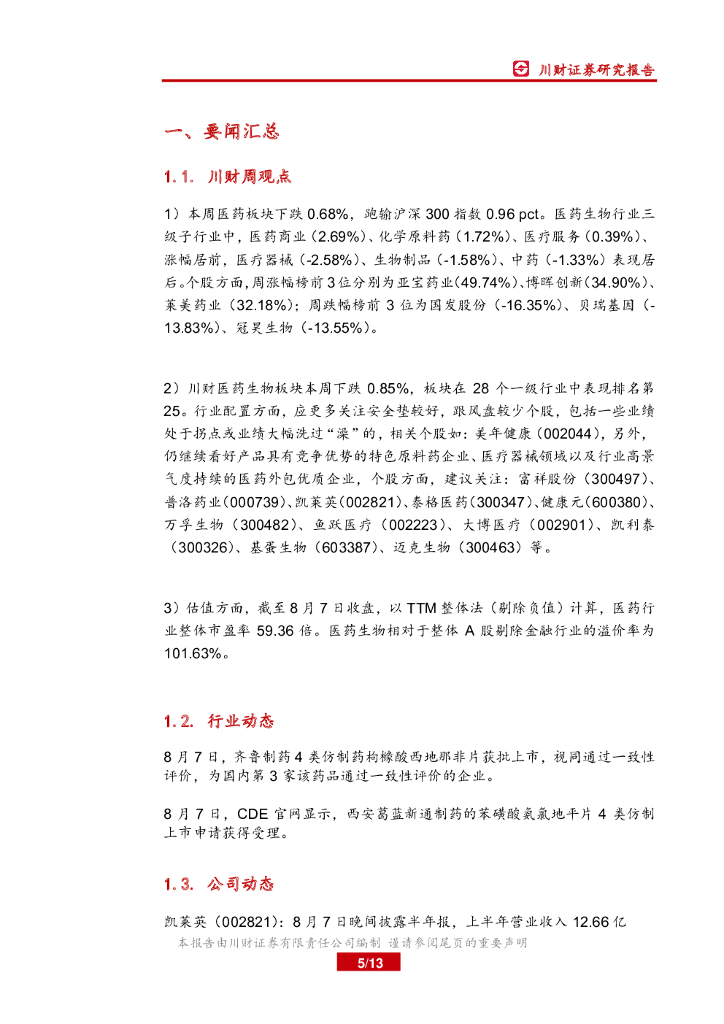 川财证券:医药生物行业周报:行业小幅调整,业绩仍具支撑.pdf