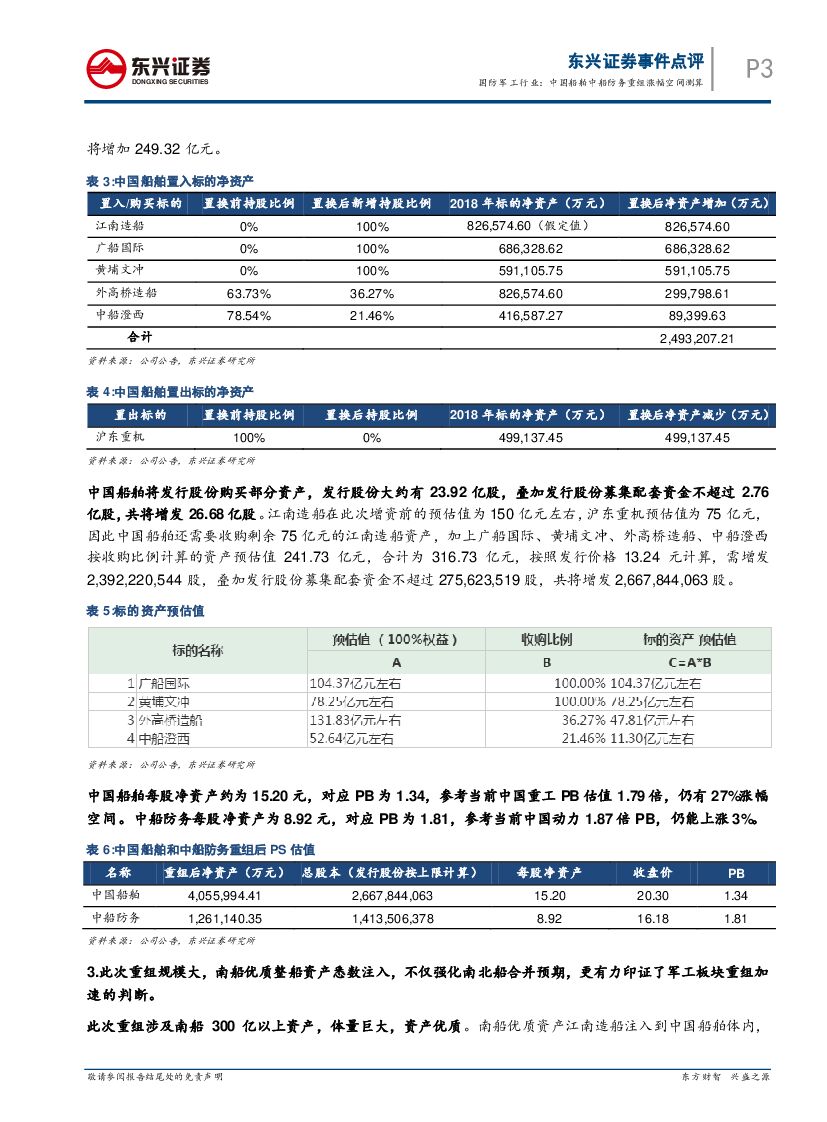 东兴证券:国防军工行业事件点评:中国船舶中船防务重组涨幅空间测算.pdf