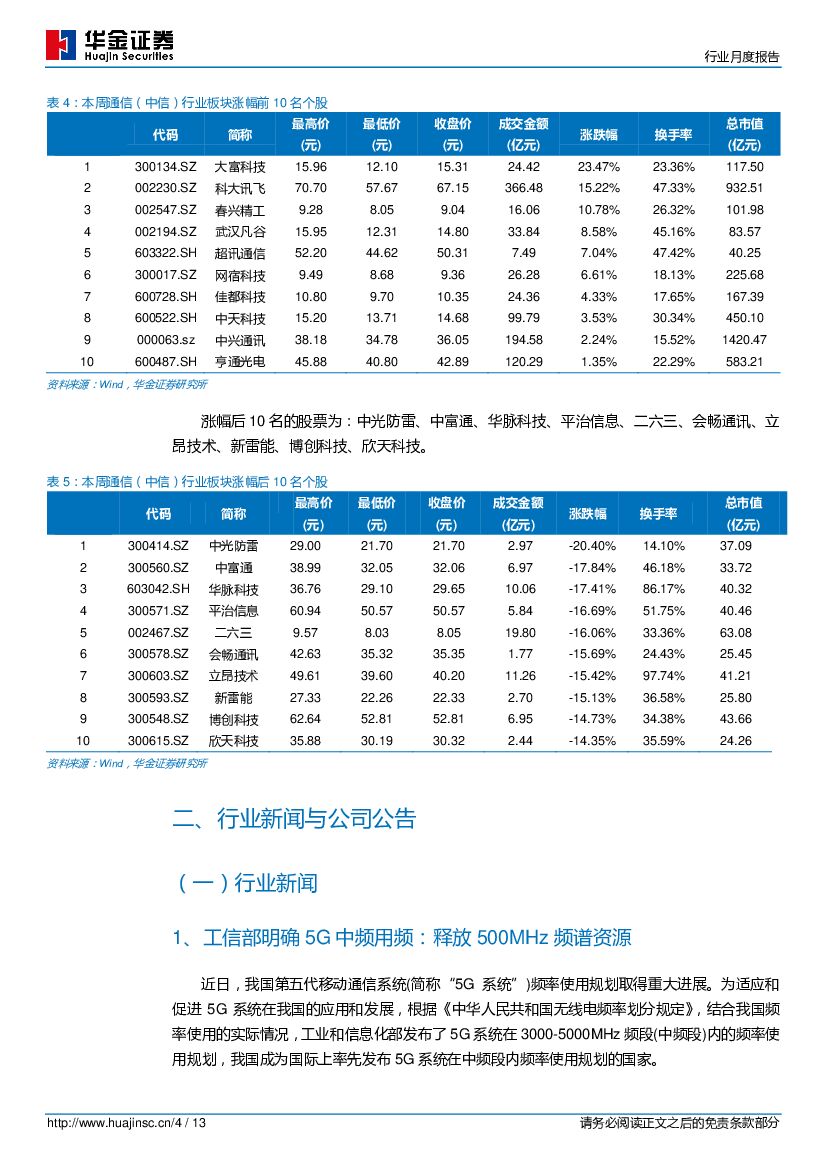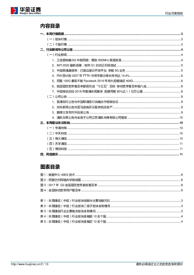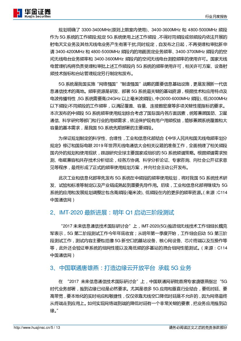 华金证券:通信行业月度报告:工信部发布5G中频段使用规划,中移动2018年普通光缆集采规模同比增长80%.pdf