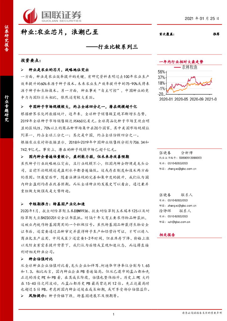 国联证券:行业比较系列三:种业:农业芯片,浪潮已至.pdf