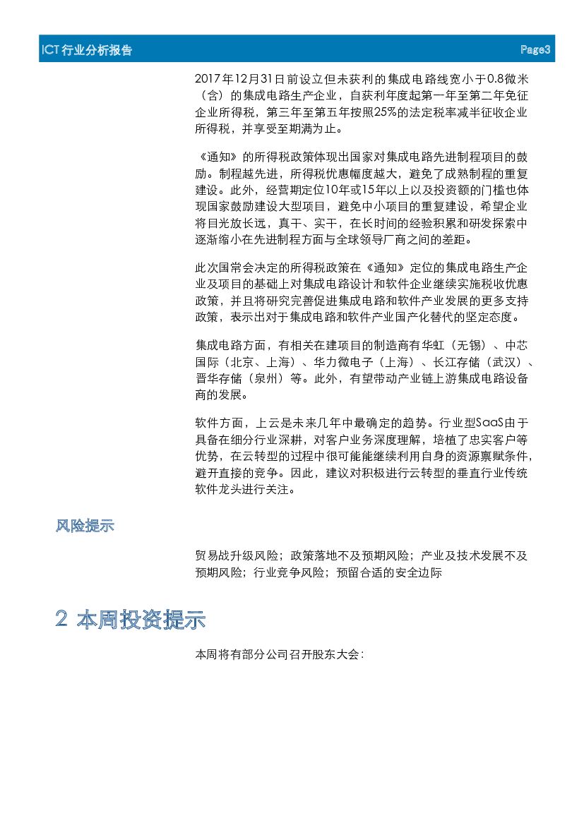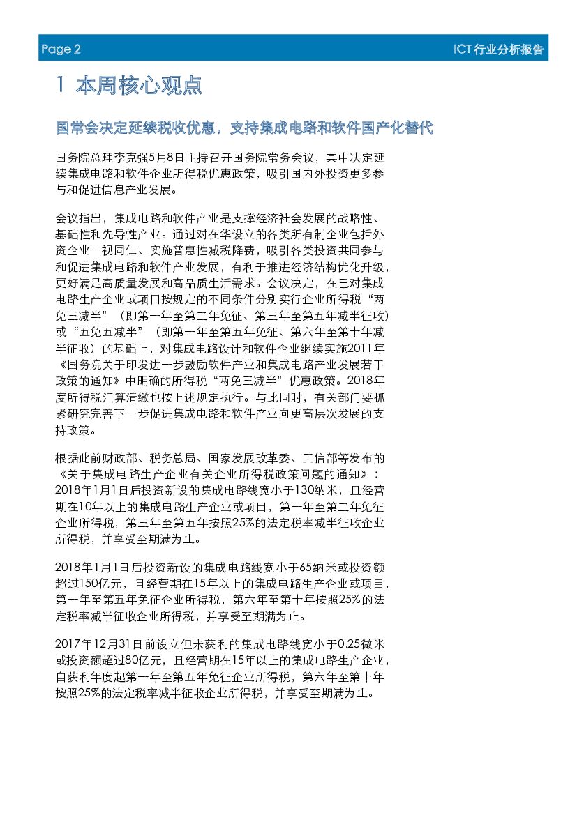 首创证券:ICT行业周报:国常会决定延续税收优惠,支持集成电路和软件国产化替代.pdf