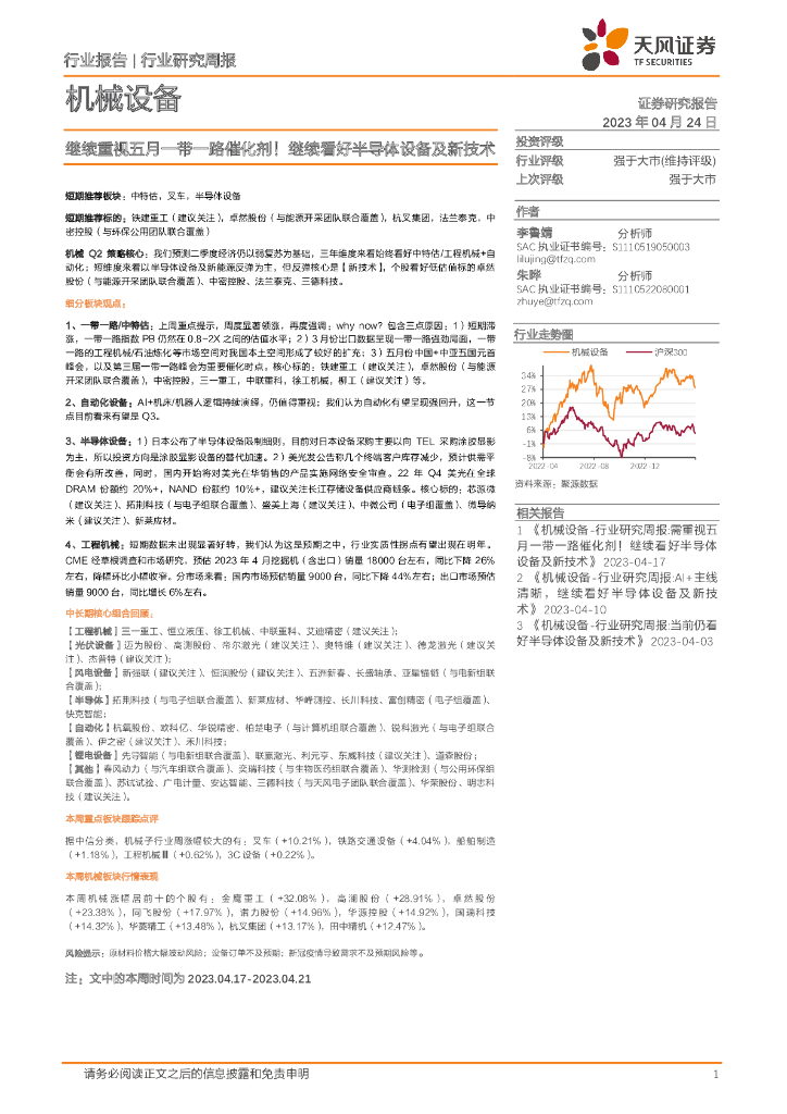 天风证券:机械设备行业研究周报:继续重视五月一带一路催化剂!继续看好半导体设备及新技术.pdf