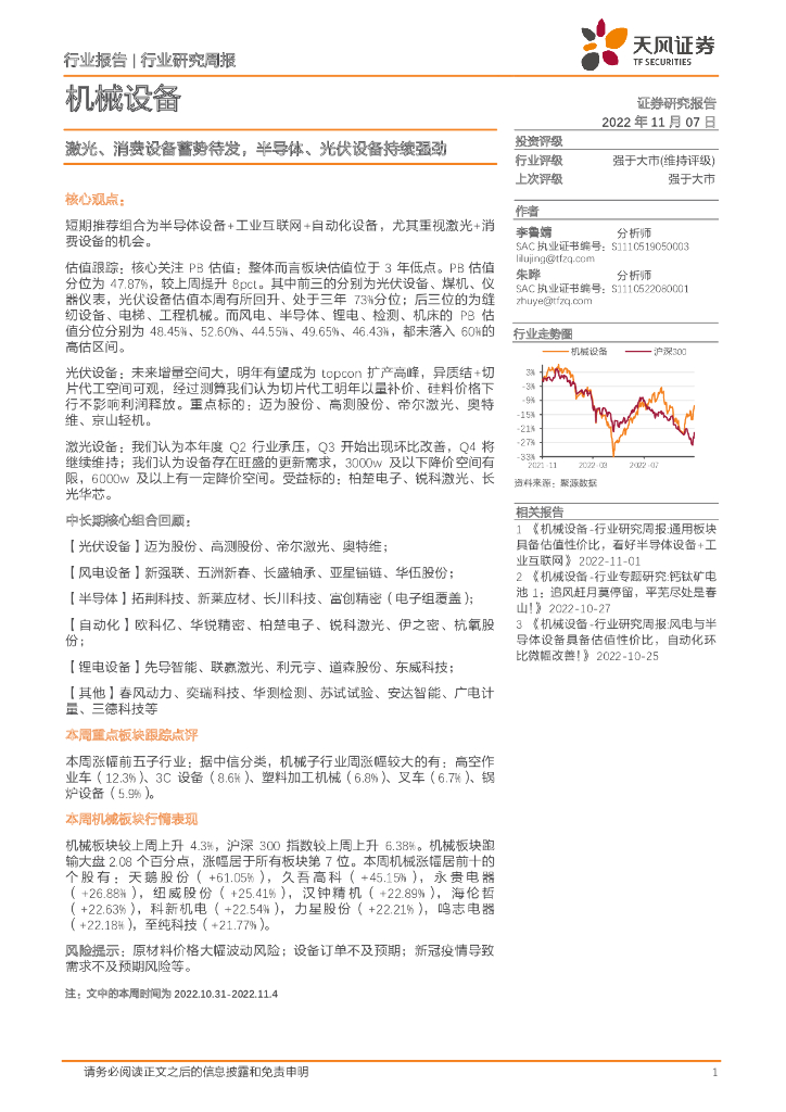 天风证券:机械设备行业研究周报:激光、消费设备蓄势待发,半导体、光伏设备持续强劲.pdf