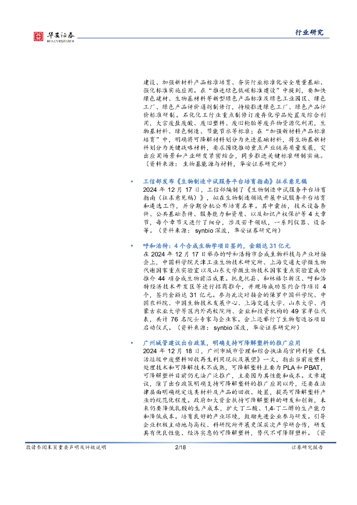 华安证券:基础化工行业周报:合成生物学周报:工信部发文推动生物基材料发展,呼和浩特签约31亿合成生物学项目.pdf