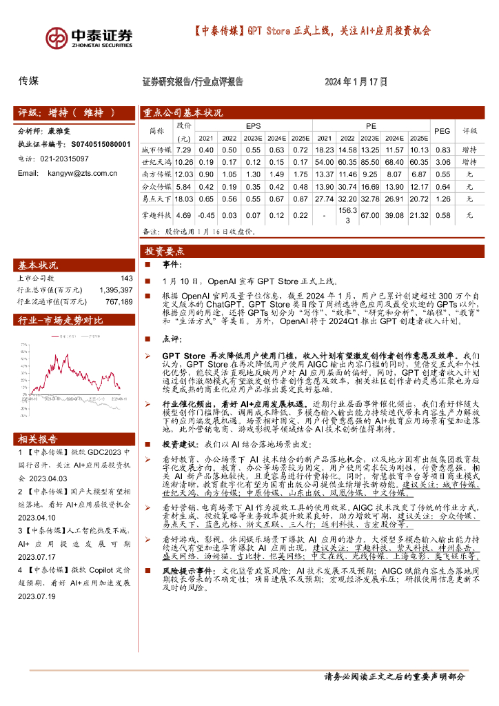 中泰证券:传媒:【中泰传媒】GPT Store正式上线,关注AI+应用投资机会.pdf