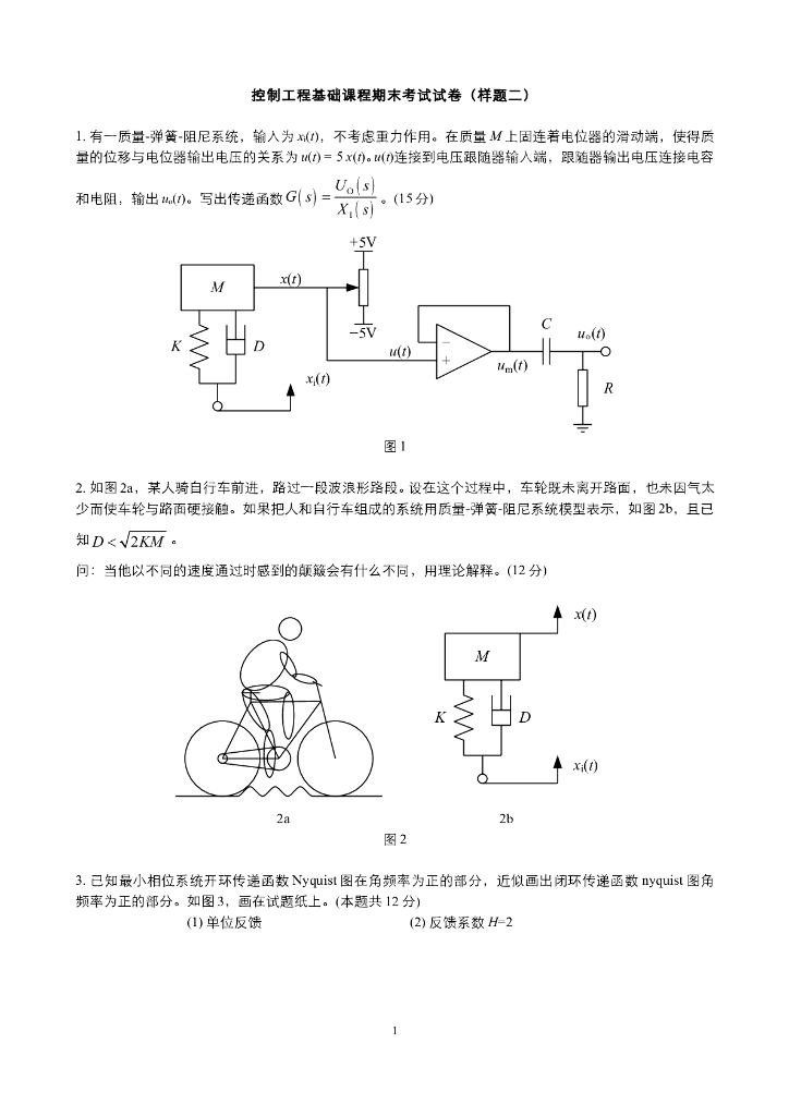 《控制工程基础》测试试卷-控制工程基础课程期末考试试卷及参考答案.pdf
