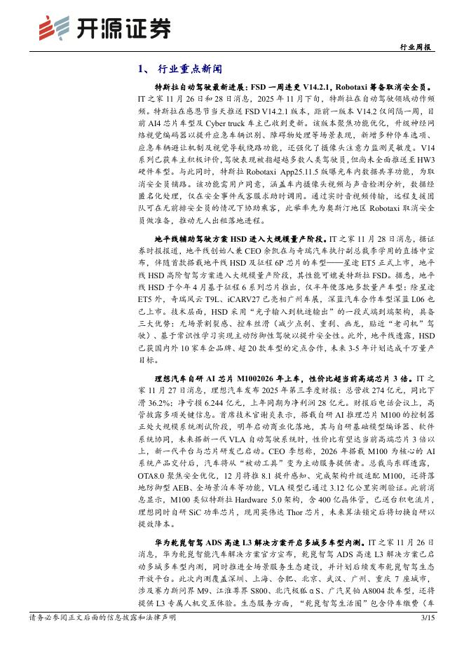 开源证券:汽车行业周报:特斯拉FSDV14.2.1上线,长安汽车拟2.25亿元参与设立机器人公司.pdf