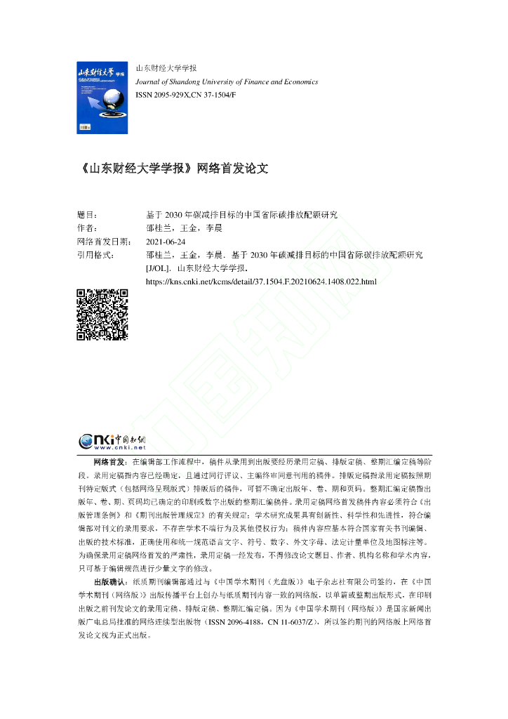 基于2030年碳减排目标的中国省际碳排放配额研究.pdf