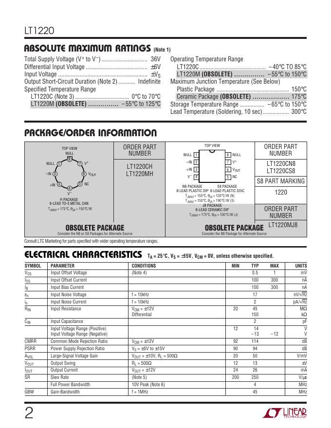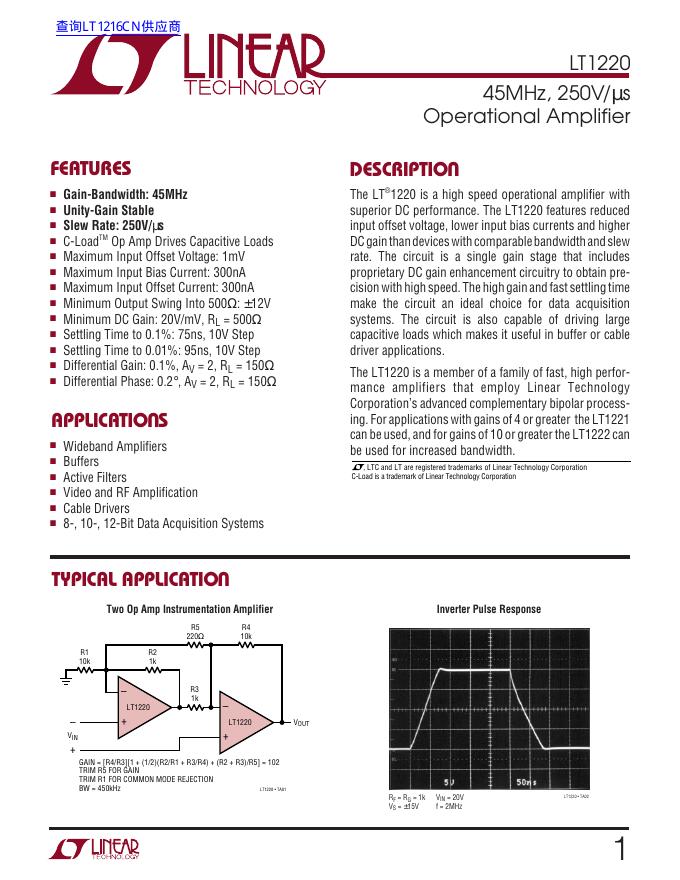 LINEAR TECHNOLOGY LT1220 数据手册.pdf