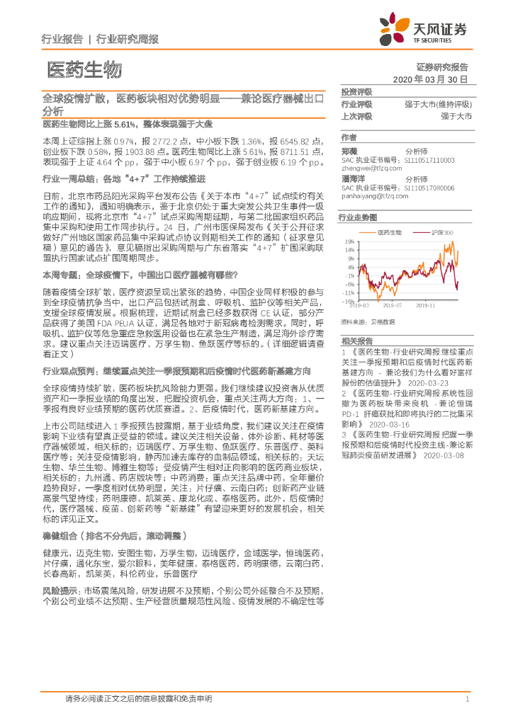 天风证券:医药生物行业研究周报:兼论医疗器械出口分析——全球疫情扩散,医药板块相对优势明显.pdf