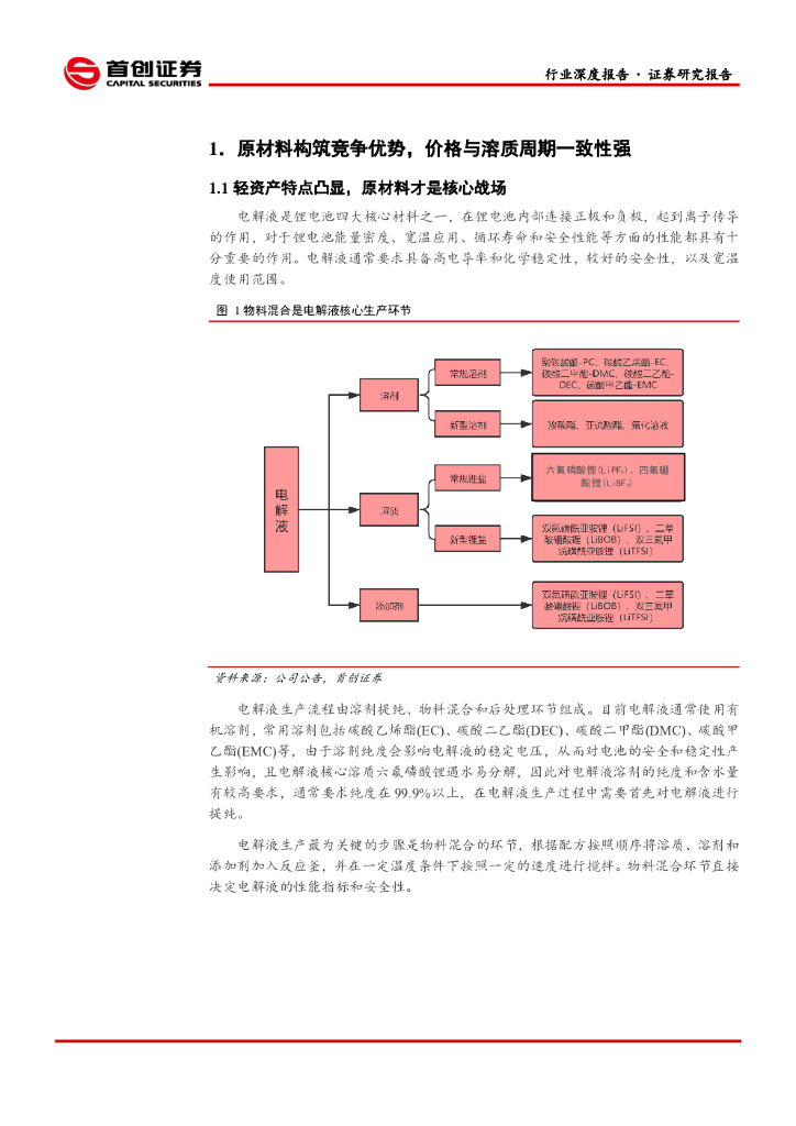 首创证券:电气设备行业深度报告:电解液格局持续优化,原材料才是核心战场.pdf