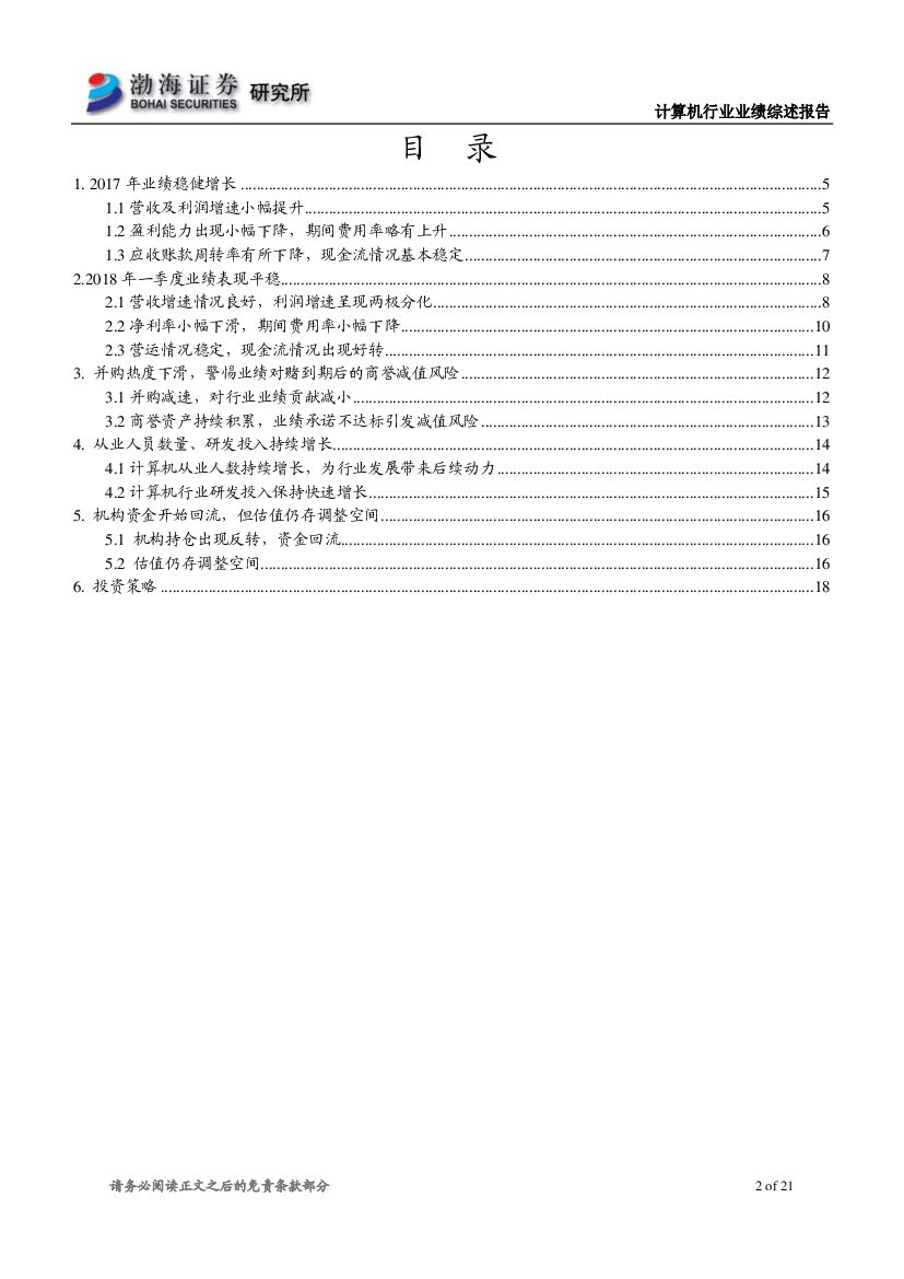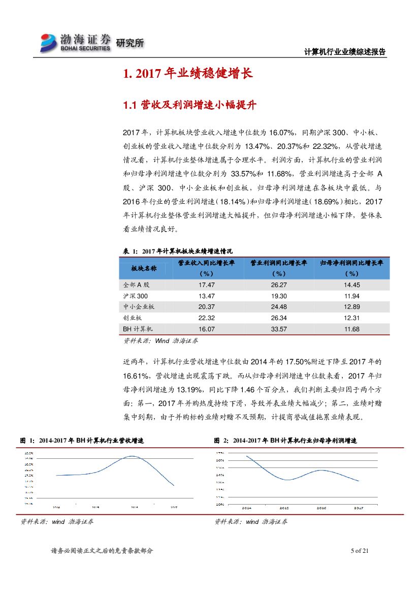 渤海证券:计算机行业2017年年报及2018年一季报综述:行业业绩稳健增长,中短期估值仍存回调空间.pdf