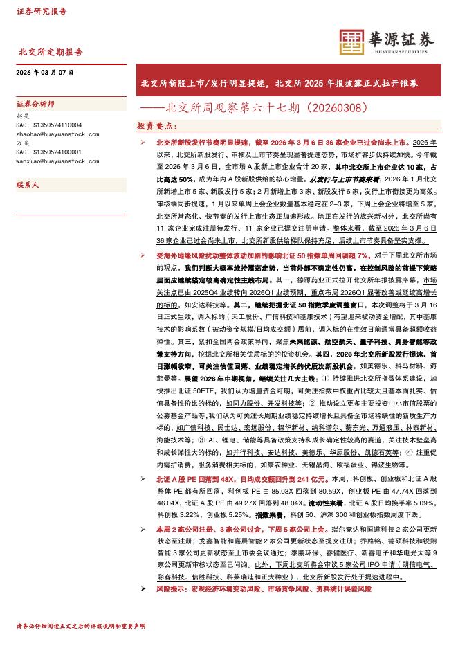 华源证券:北交所周观察第六十七期:北交所新股上市/发行明显提速,北交所2025年报披露正式拉开帷幕-260308.pdf