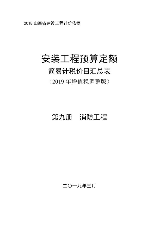 山西省安装工程预算定额 简易计税价目汇总表(2019年增值税调整版)第九册 消防工程.pdf