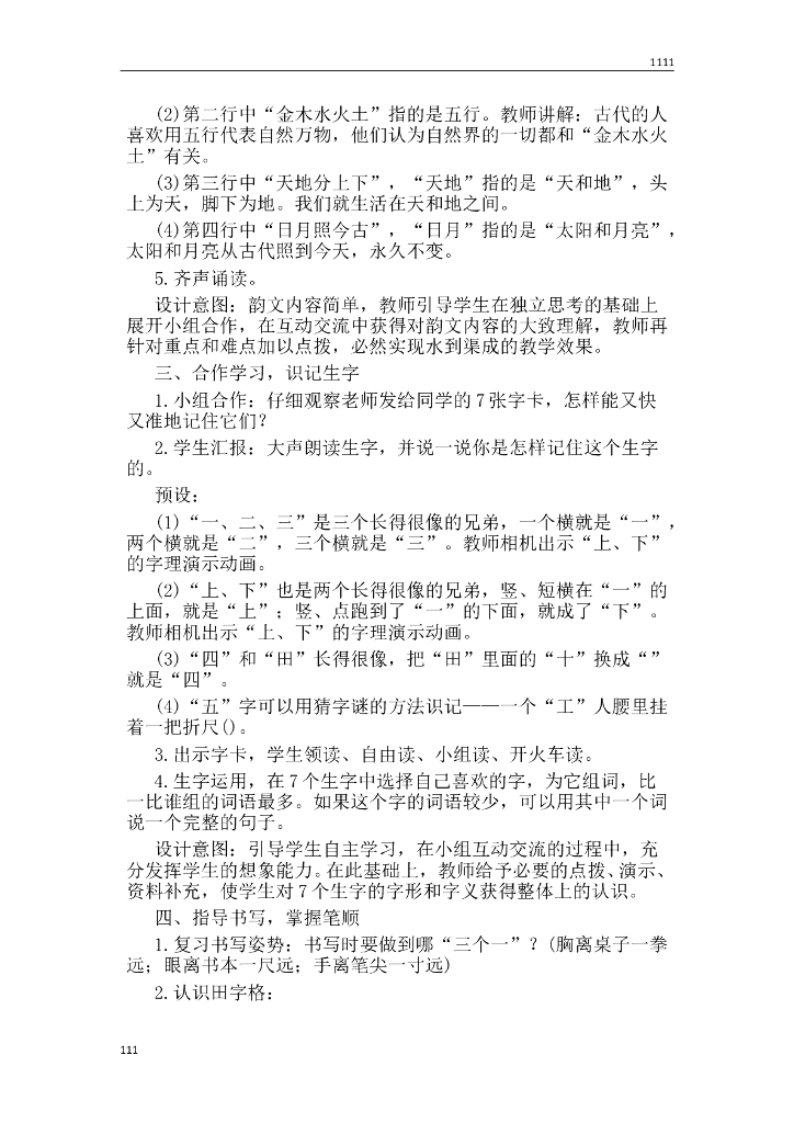一年级语文(教案3)识字2 金木水火土教学设计.doc