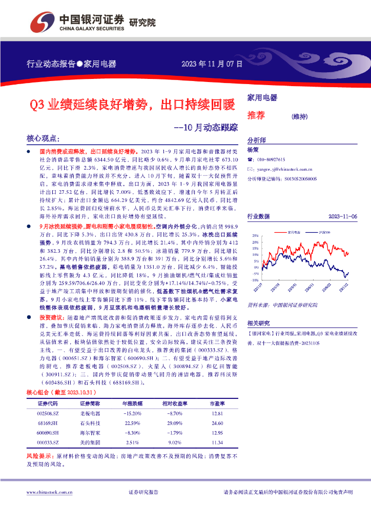 中国银河:家用电器10月动态跟踪:Q3业绩延续良好增势,出口持续回暖.pdf