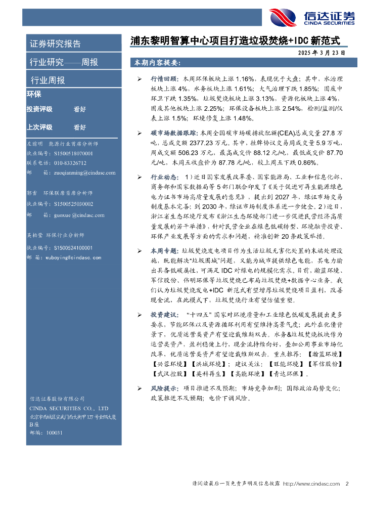 信达证券:环保周报:浦东黎明智算中心项目打造垃圾焚烧+IDC新范式.pdf
