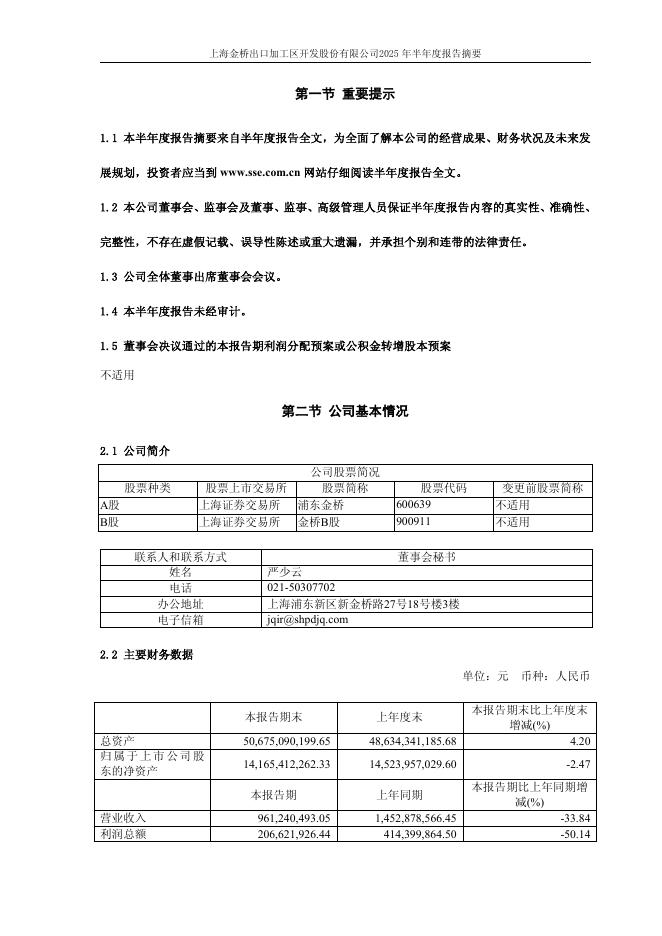 600639-浦东金桥:浦东金桥2025年半年度报告.pdf