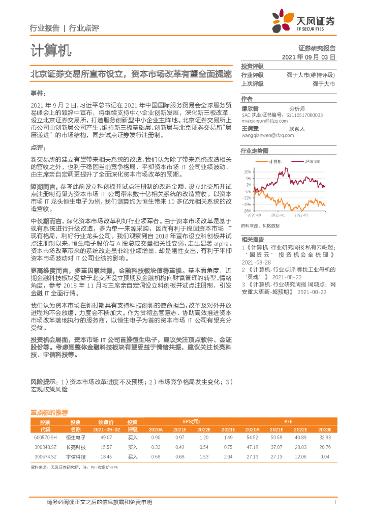 天风证券:计算机行业点评:北京证券交易所宣布设立,资本市场改革有望全面提速.pdf