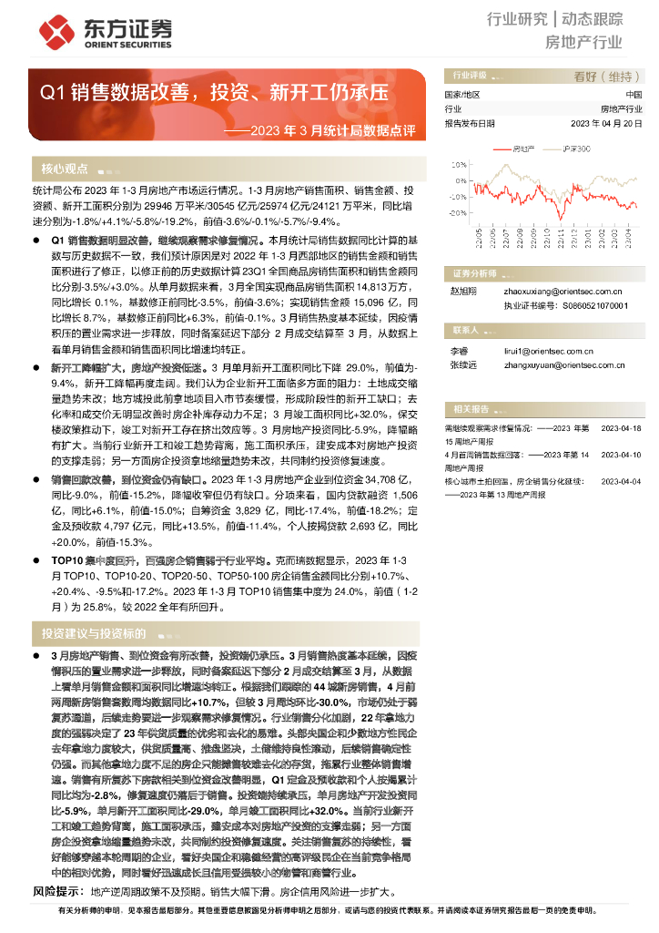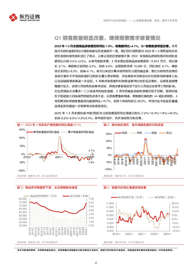 东方证券:房地产行业:2023年3月统计局数据点评-Q1销售数据改善,投资、新开工仍承压.pdf