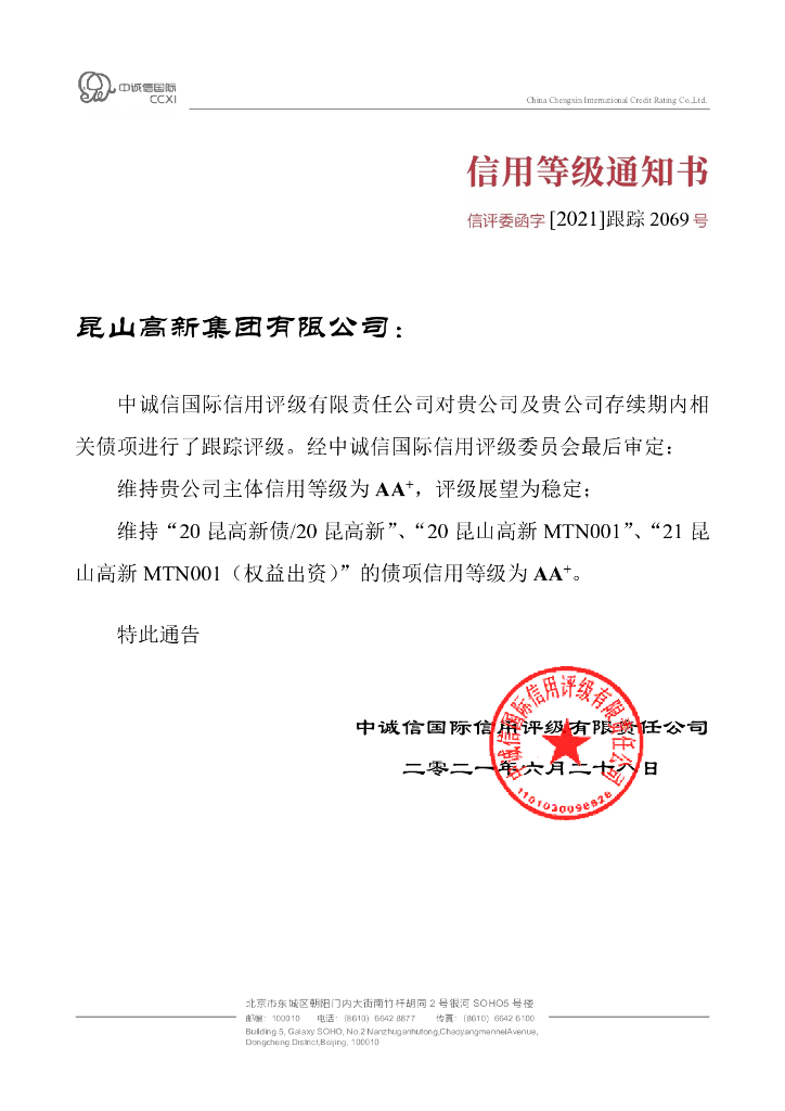 中诚信:昆山高新集团有限公司2021年度跟踪评级报告.pdf