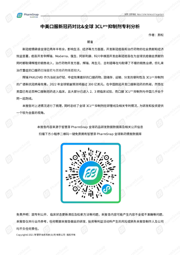 智慧芽:中美口服新冠药对比&全球3CL抑制剂专利分析.pdf
