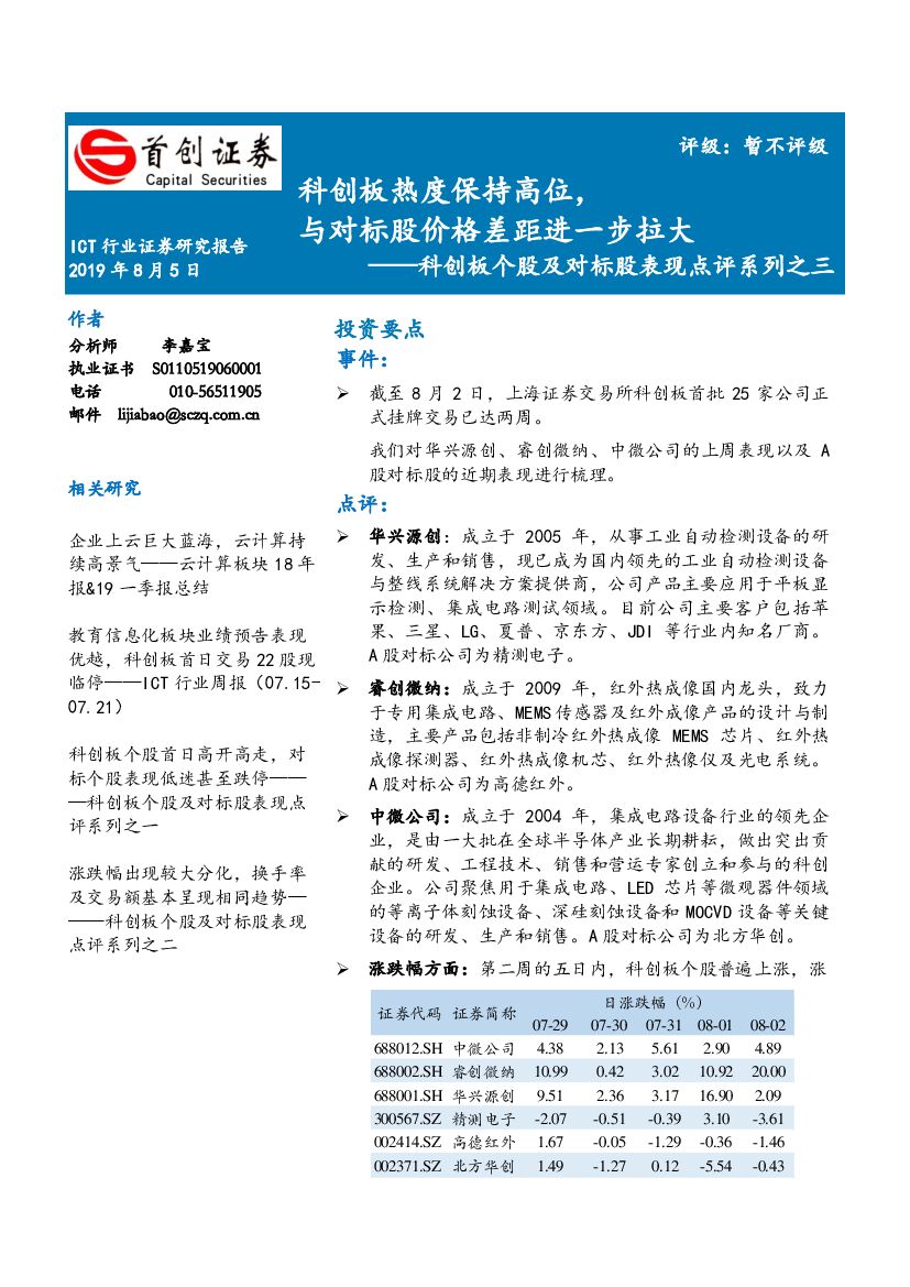 首创证券:科创板个股及对标股表现点评系列之三:科创板热度保持高位,与对标股价格差距进一步拉大.pdf