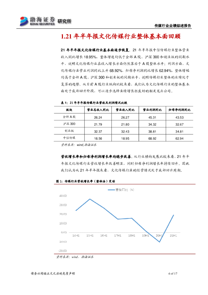渤海证券:传媒行业半年报业绩综述:业绩整体回升,精选细分白马.pdf