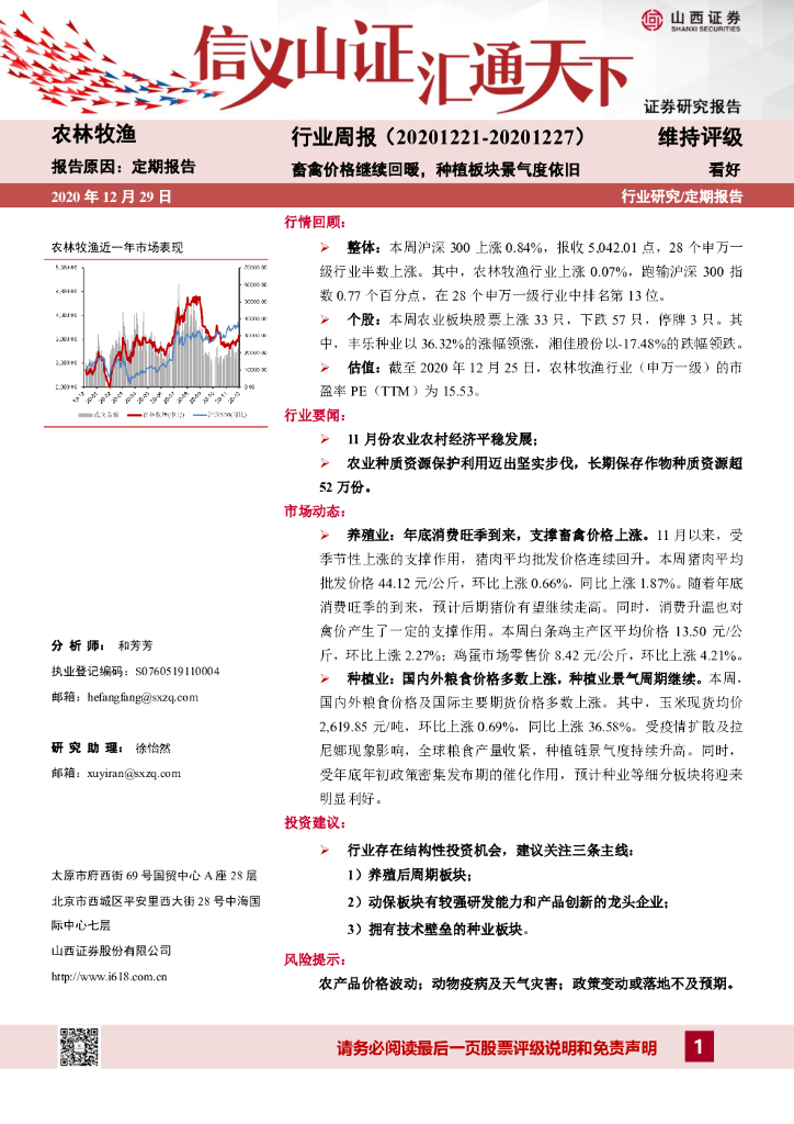 山西证券:农林牧渔行业周报:畜禽价格继续回暖,种植板块景气度依旧.pdf