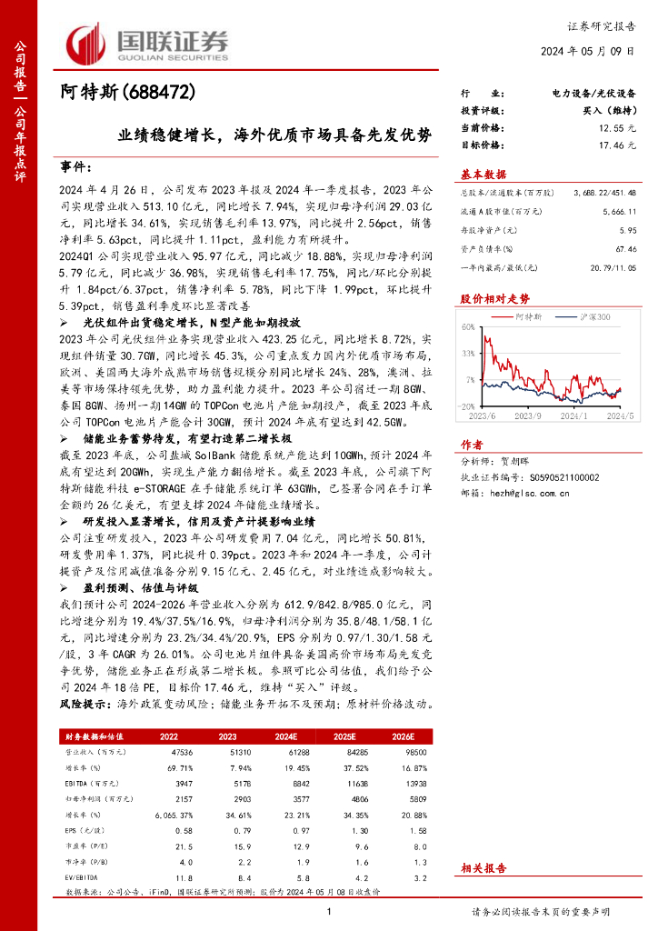 国联证券:阿特斯(688472)-业绩稳健增长,海外优质市场具备先发优势.pdf
