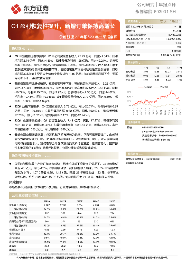 东方证券:永创智能22年报&23年一季报点评:Q1盈利恢复性提升,新增订单保持高增长.pdf