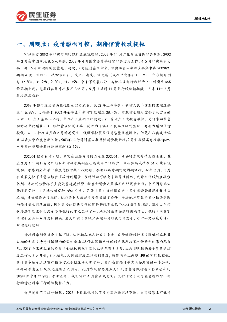 民生证券:银行业周报:疫情影响可控,期待信贷投放提振.pdf