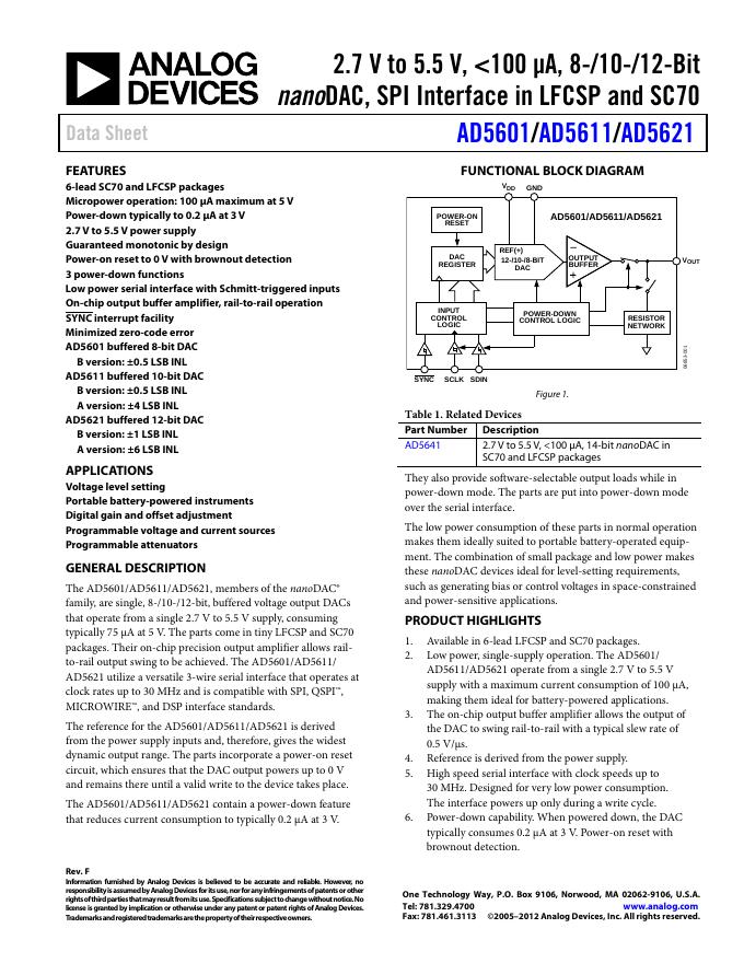 ANALOG DEVICES AD5601/AD5611/AD5621 英文产品数据手册 Rev F.pdf