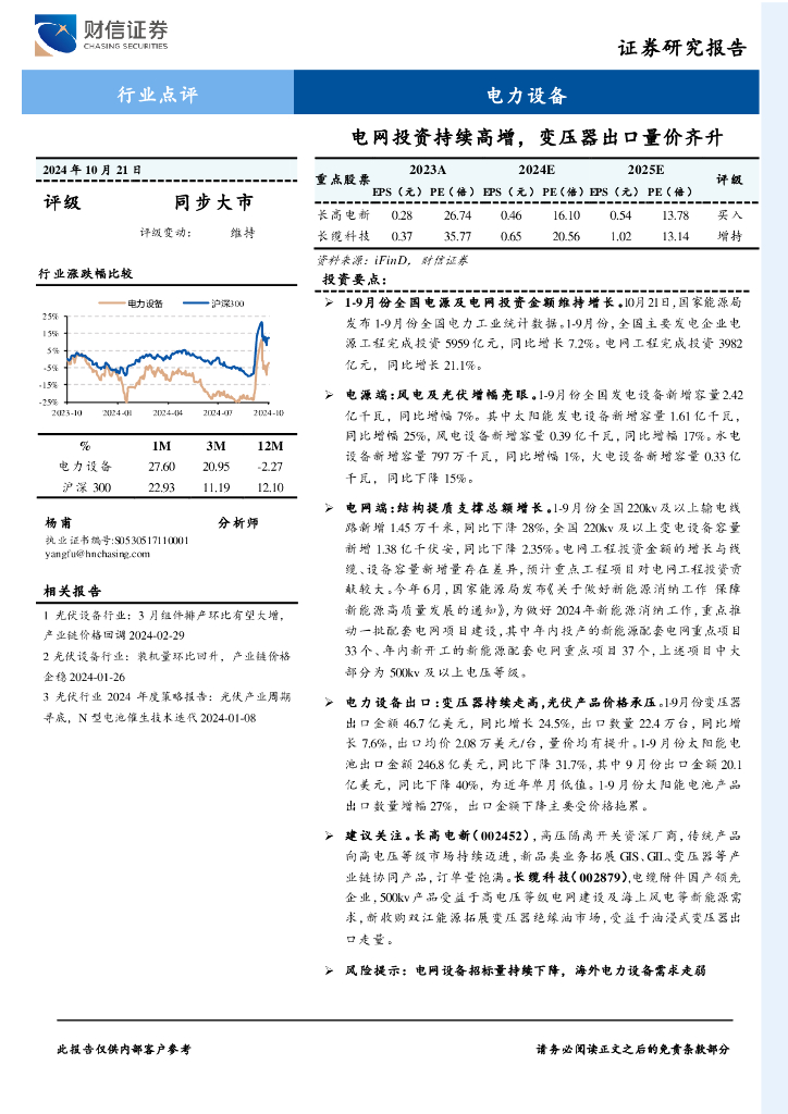 财信证券:电力设备行业点评:电网投资持续高增,变压器出口量价齐升.pdf